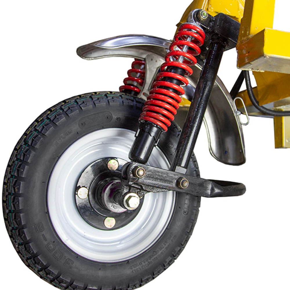 Тележка предназначена для перевозки грузов до 300 кг. Предназначена и выгодна в помещениях с небольшой квадратурой и узкими коридорами, стройках, частном секторе, базах отдыха, аэропортах, железнодорожных вокзалах. Модель оснащена бесщеточным электродвигателем мощностью 800 Вт, который способен развивать скорость до 25 км/час.