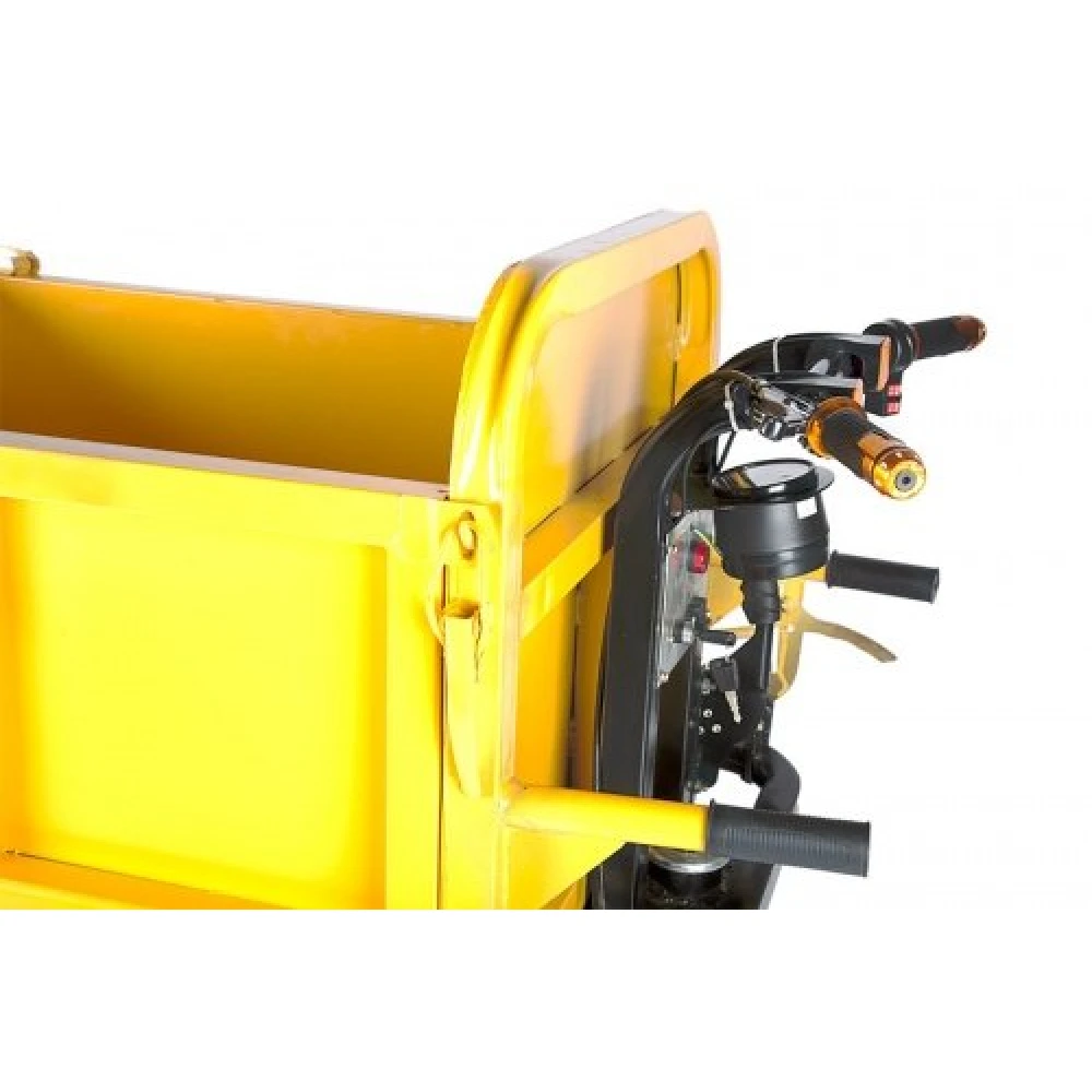 По принципу действия техника напоминает тачку и выполняет его функции. При этом управление намного проще и функциональнее. При мощности двигателя 900 Вт и емком АКБ тс способно развивать скорость до 8 км/час и преодолевать достаточное для полноценного рабочего дня расстояние.