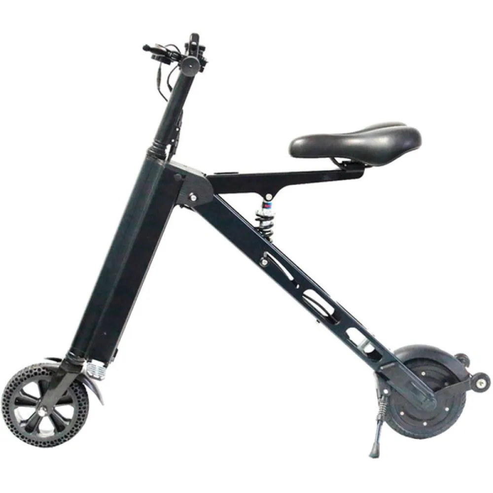 Самокат благодаря его миниатюрным размерам в сложенном виде достаточно легко переносить с собой, перевозить в багажном отделении автомобиля и хранить. Развивает скорость до 25 км/ час и с этой скоростью может проехать до 30 км. После такого использования электросамокат обязательно нужно установить на зарядку. Заряд происходит в течении трех часов, после чего самокат готов к использованию. Модель оснащена тормозом и регулятором скорости, которые расположены на руле.