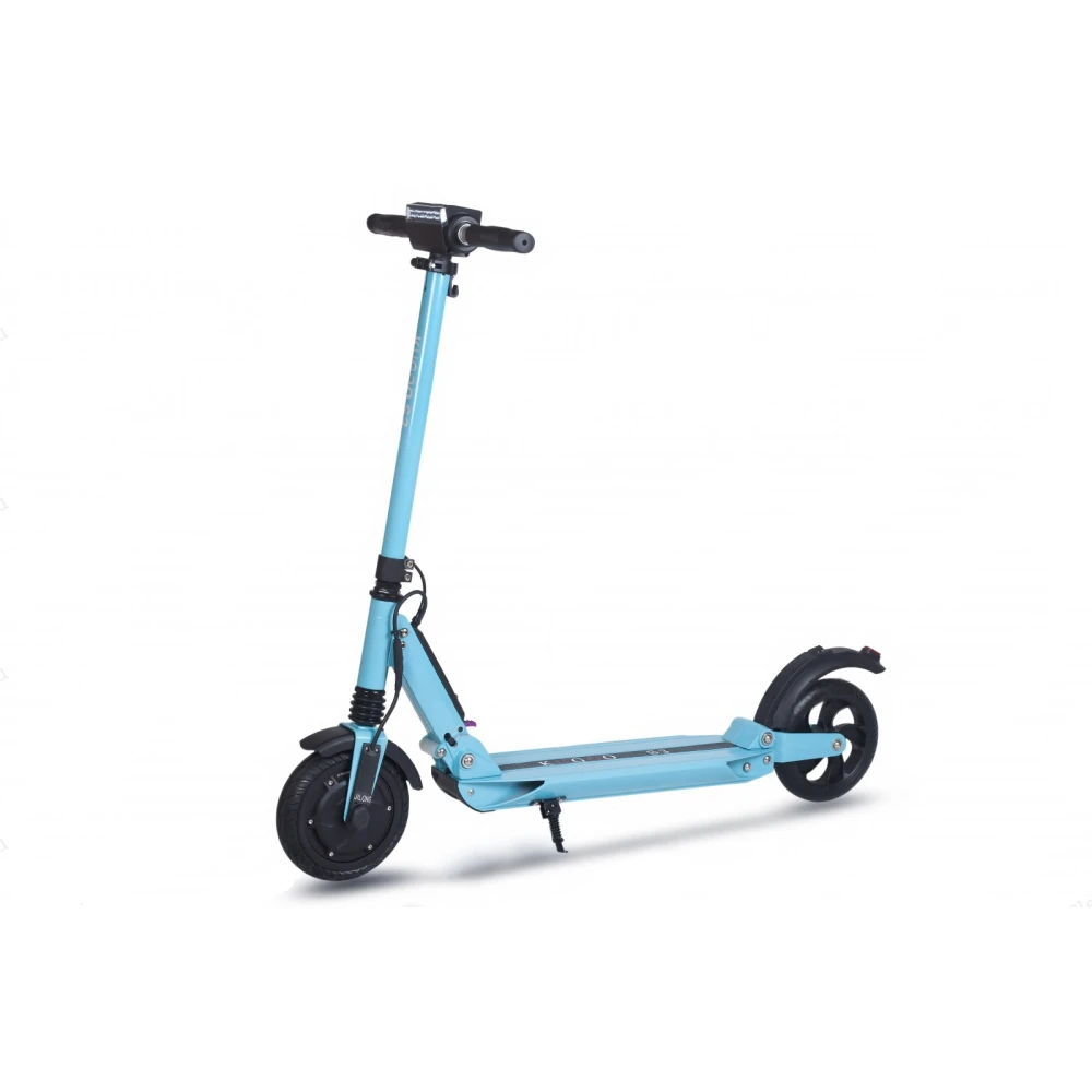 Электросамокат имеет два тормоза как на переднем, так и на заднем колесе. Уверенная сцепка с дорожным покрытием обеспечивает не просто мягкое катание, а уверенное преодоление неровности дорожного покрытия. Аккумулятор самоката заряжается от сети, от полного разряда до 100 % необходимо заряжать четыре часа. На одном заряде электросамокат может проехать до 26 км.