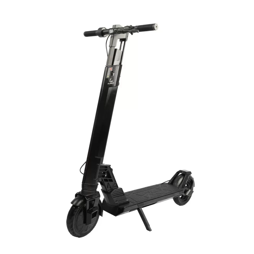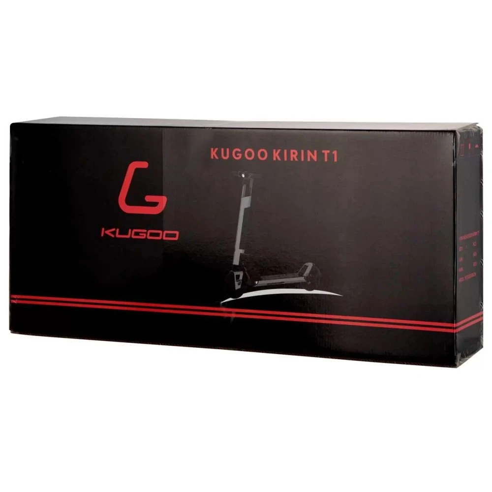 Двойная амортизация самоката Kugoo Kirin T1 делает поездки на нём более комфортными. Она справляется с любыми городскими препятствиями и неровностями на дорогах. Аккумулятор самоката находится внутри деки. Он заряжается за 6 часов, что позволяет использовать самокат ежедневно. Электромотор помещён в переднее колесо. Он разгоняет Kirin T1 дои 25 км/ч.