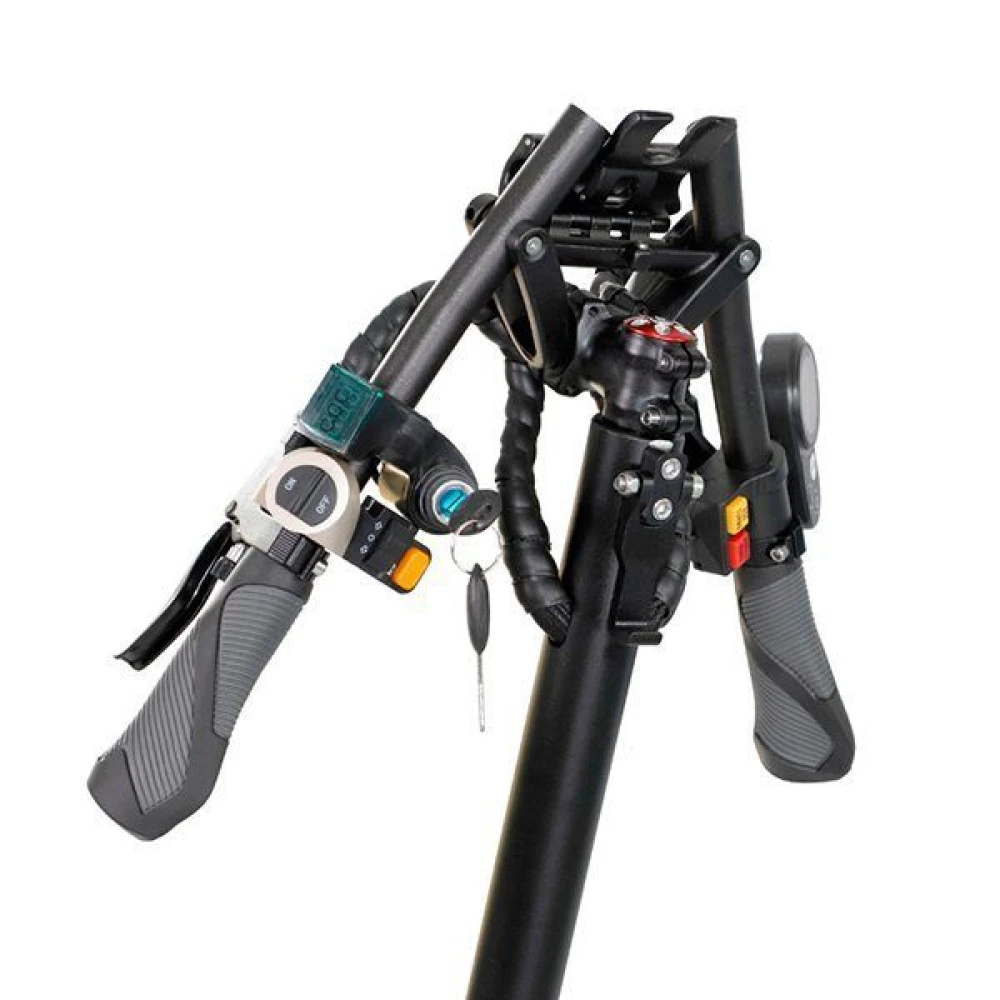 Электросамокат оснащен жк-дисплеем, информирующем ездока о скорости, заряде батареи. Транспортное средство имеет круиз контроль и 20 удобных блоков управления. Товар оснащен пневматической подвеской и штатными поворотниками.