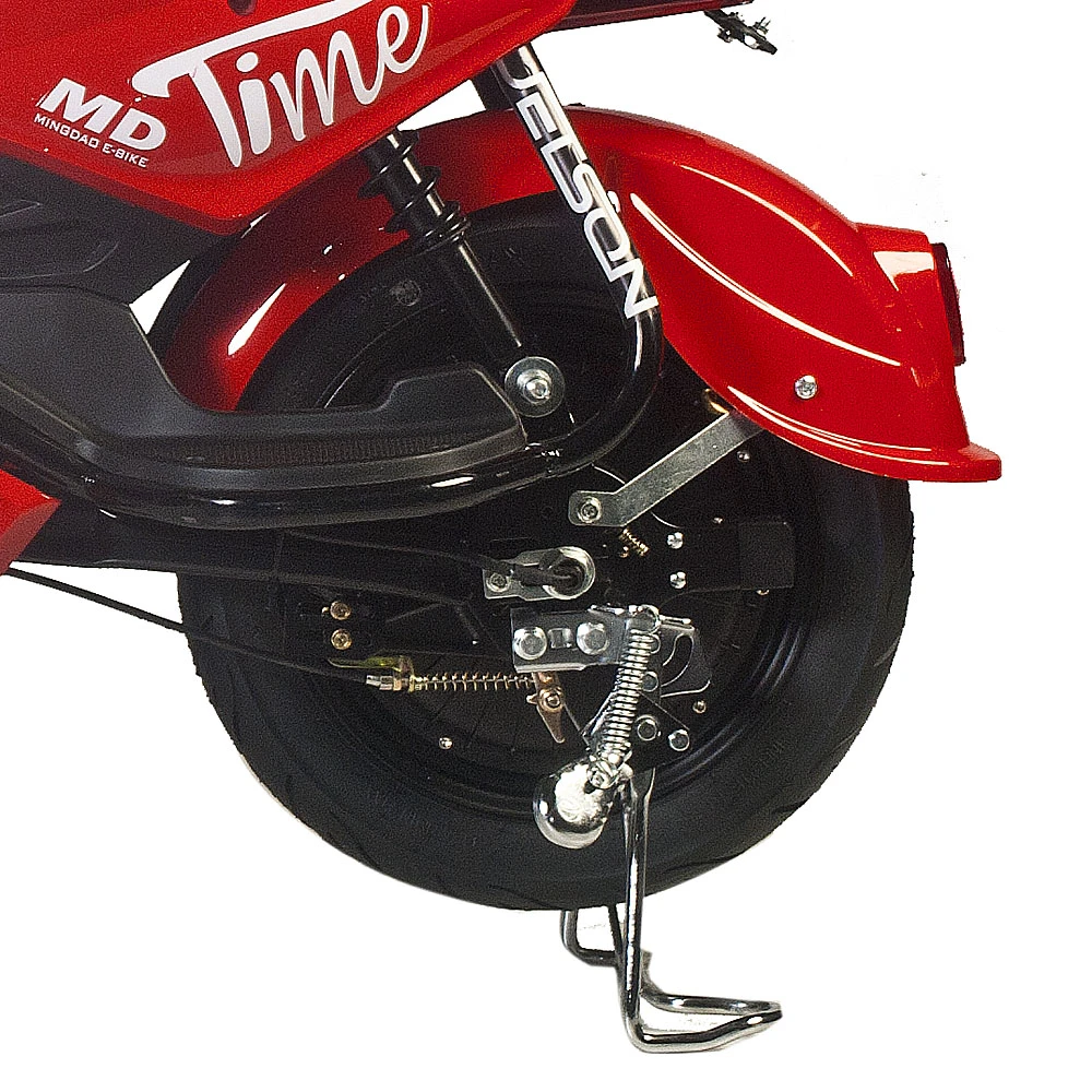 Аккумулятор быстросъёмный и имеет защиты от перезарядки, что делает его зарядку значительно проще. Заряжается он ни много, ни мало – 4 часа, что на самом деле довольно быстро для батарею такой ёмкости. 14-дюймовые колёса и регулируемая подвеска придадут больший комфорт при движении по любым поверхностям. Практичные барабанные тормоза электроскутера Jetson RS-12 делают его остановку максимально плавной. В тёмное время суток перемещение на скутере безопасно благодаря мощной LED-лампе спереди и габаритному огню сзади. В комплекте к электроскутеру идут корзинка для удобной перевозки малогабаритных вещей и сидение с прямой спинкой для комфортной посадки второго пассажира. Также на скутер с завода установлена сигнализация.