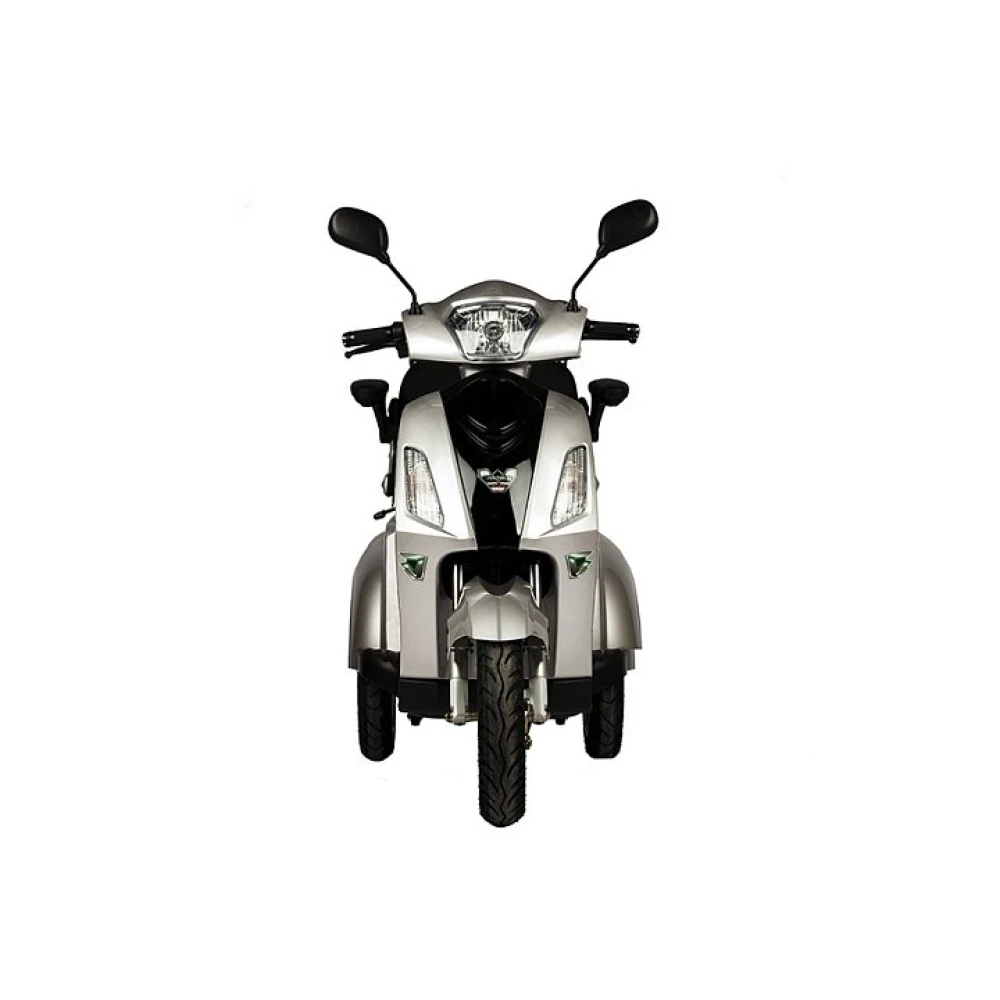 При мощности двигателя 1000 Вт и емкой АКБ электроскутер способен разогнаться до 30 км/час и на одной подзарядке проехать до 50 км пути. При массе тс 80 кг максимальная грузоподъемность составляет 120 кг.