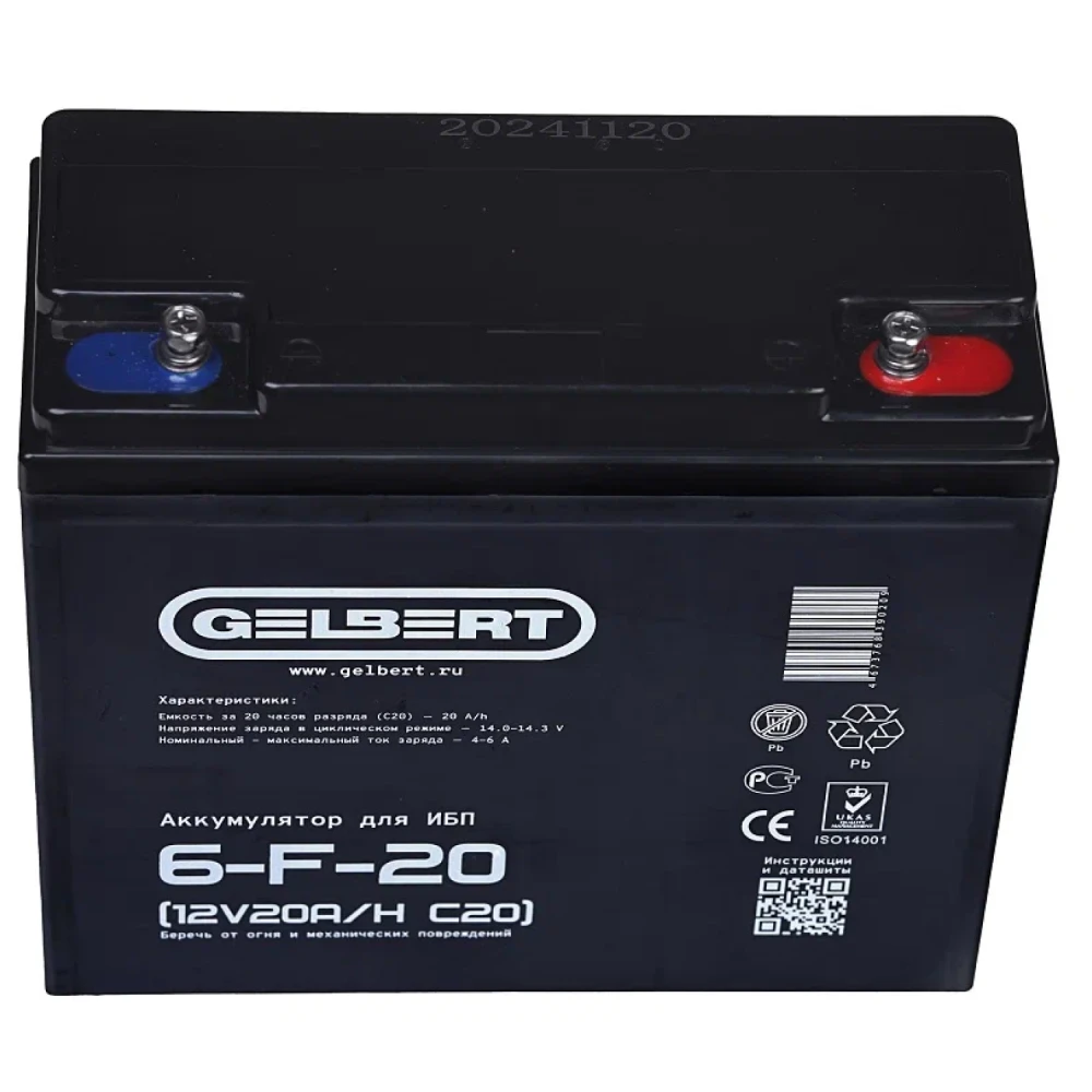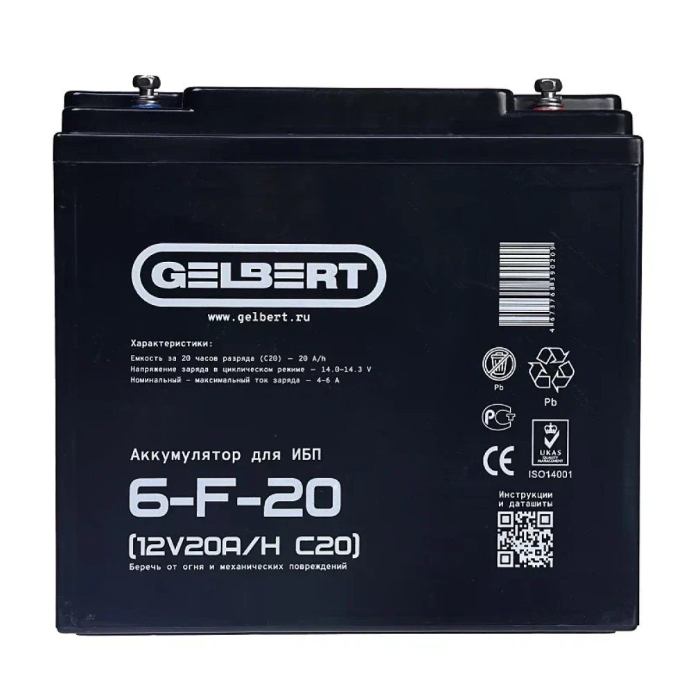 Аккумулятор для ИБП Rutrike Gelbert 6-F-20 (12V20A/H C20)